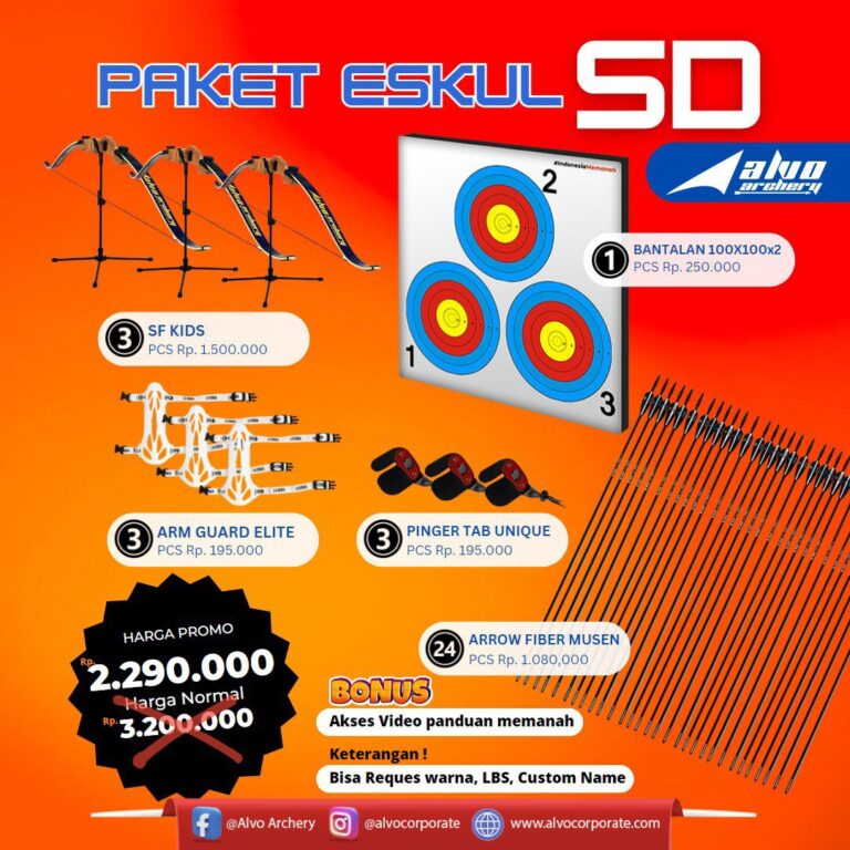 - 1.11 Ayo Berlatih Bersama Busur Panahan Alvo Archery! Tunjukkan kepada anak-anak Anda potensi mereka dan berikan mereka kesempatan untuk tumbuh dan berkembang melalui olahraga panahan. Dapatkan Alvo Archery sekarang dan jadikan kegiatan olahraga di sekolah menjadi lebih menyenangkan!